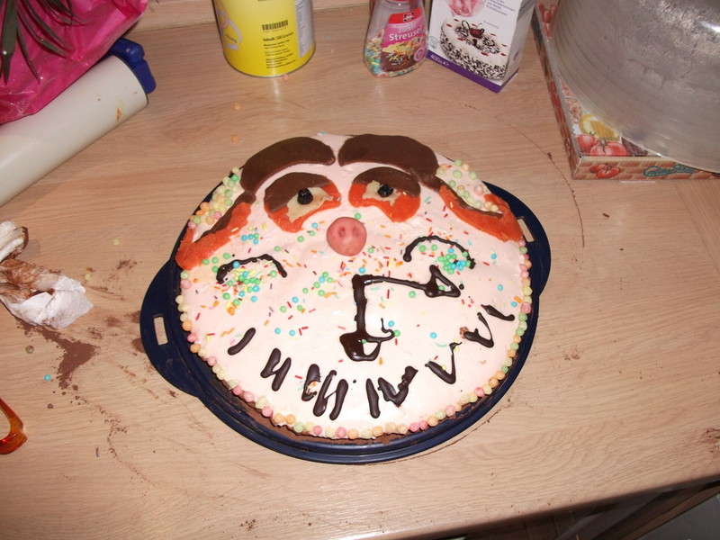 Ich backe übrigens sehr gern und diese Torte hat sich mein Jüngster zum Geburtstag gewünscht... Es gibt von jeder Torte ein Foto, doch es ist leider unmöglich, die alle zu präsentieren. Vom Rennauto bis zur dreistöckigen "Ach- Du- Schreck- Torte" war schon alles dabei...